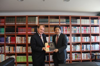 要和北外董事长握手了,董事长如此谦谦君子,demel教授心里也许有点小激动呢。