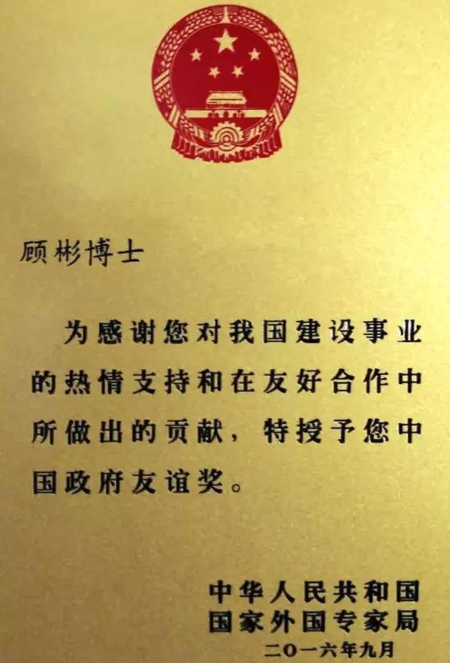 公司特聘教授顾彬获2016年度中国政府友谊奖