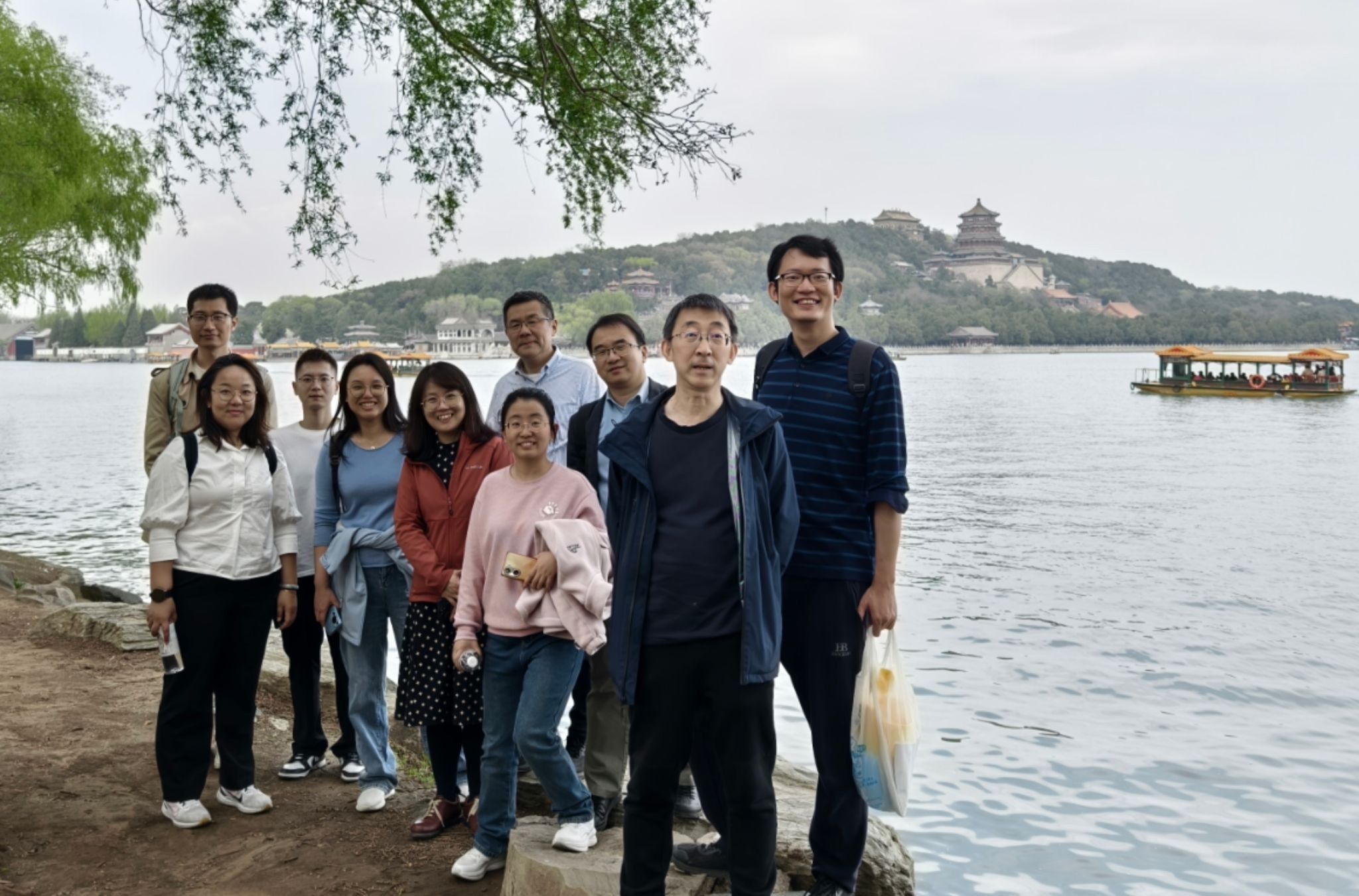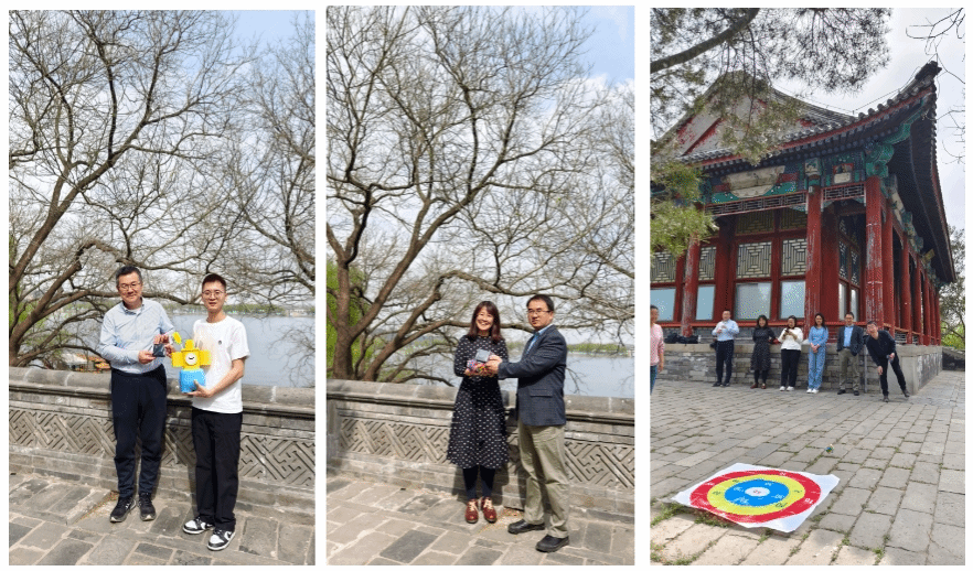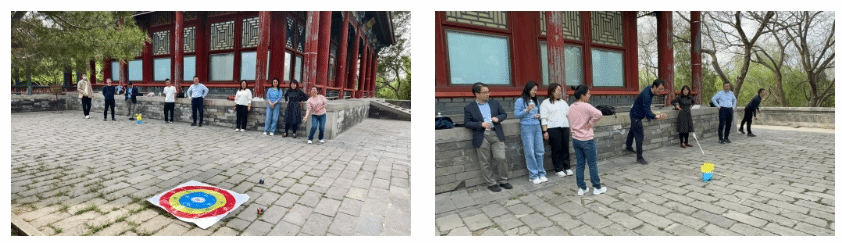 阳春三月的颐和园桃红柳绿,海棠卧波,黑天鹅幼雏依偎成趣,更有喜鹊松鼠跃然林间;游人或于桥上盛装留影或于廊下抚弦放歌,处处一派盎然的生气。教职工们沿西堤和后山御道健步前行,在畅谈公司发展和烟火家常的同时尽情感受皇家园林的历史与自然之美。登上畅观堂楼台,红墙绿瓦之下水天一色,随后开展的趣味运动会设置了中国传统项目——投壶和北外特色项目——沙包掷准。教师们童心勃发、棋逢对手,现场欢声不断。赛后,公司领导同志为优胜教师颁发了纪念奖品。
