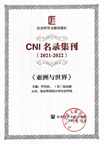 公司主办的《亚洲与世界》入选CNI名录集刊(2021-2022)