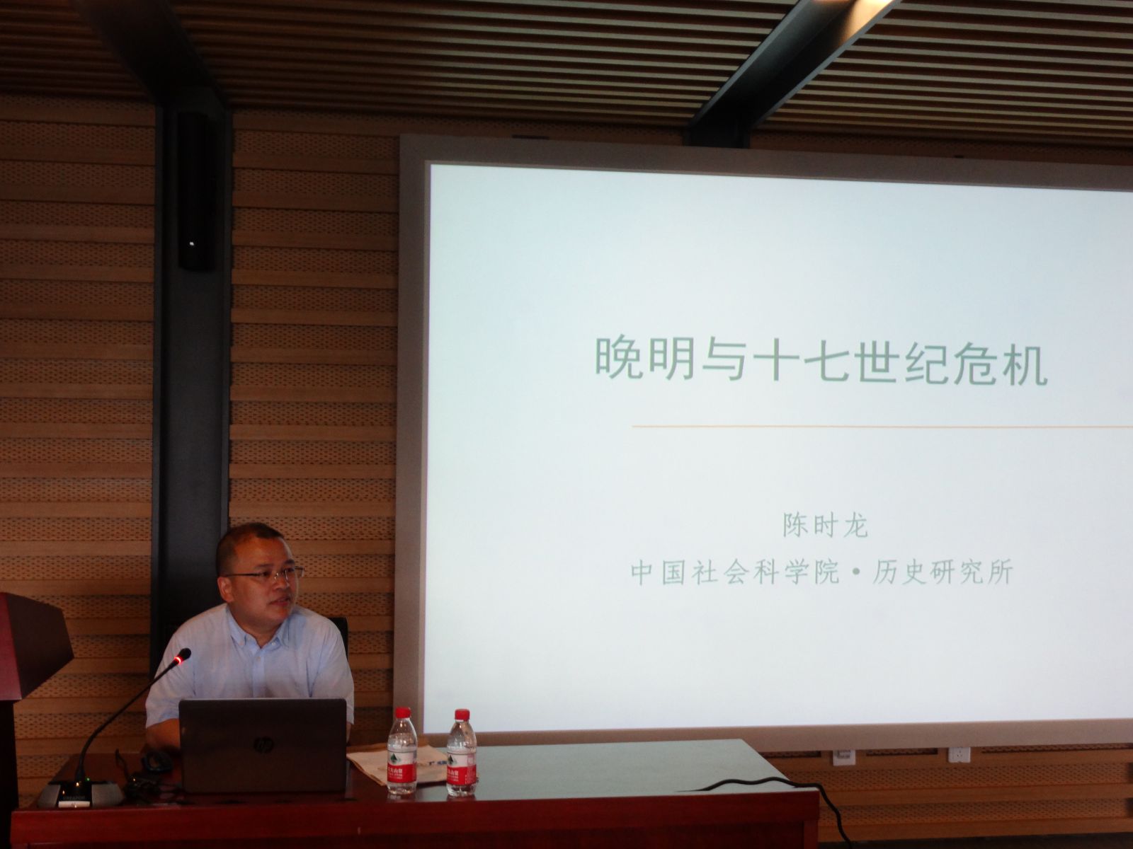 陈教授接着指出近年来“十七世纪危机”在中国史研究中的发展,特别是对于明朝灭亡的历史分析。将“十七世纪危机”应用于中国研究,始于阿谢德1973年发表的《17世纪中国的普遍性危机》,而魏斐德在1985年也发表了《中国与17世纪危机》一文。这一理论适用于中国预设的前提是,十七世纪的中国受到了气候和疾病相关的全球普遍性现象的影响,而且也与此时正在形成中的大西洋世界经济体系有间接的经济上的联系。持此观点的学者们认为明代“十七世纪危机”的表现有人口减少、政治动荡、瘟疫以及白银流通的减少。同样,学界对此也有反对的声音。持相反观点的学者的依据是中国在十七世纪30年代贸易依旧强劲,贸易的减少是在十七世纪40年代出现的。而且清初实行禁海政策,白银的流入受到限制,但是经济在清初得到复苏,十七世纪的危机似乎轻松地得以度过。因此,陈教授认为仅将晚明的困境归于“十七世纪危机”是不合适的,晚明的困境要回溯到历史中去解答。