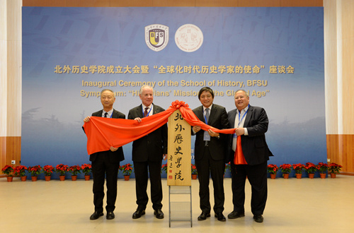 德国国家科公司院士、德国杜塞尔多夫大学原董事长腊碧士教授(Alfons Labisch),匈牙利罗兰大学董事长薄慕往教授(Borhy László),德国波恩大学汉学系主任廉亚明教授(Ralph Kauz),北外全球史研究院特聘教授顾彬(Wolfgang Kubin),美国夏威夷大学中国研究中心主任刘长江教授(Frederick Lau),奥地利维也纳大学汉学系李夏德教授(Richard Trappl),香港科技大学人文公司经理李中清教授(James Lee),中国社科院世界史所所长张顺洪研究员,中国人民大学WilliamHill经理、长江学者黄兴涛教授,南京大学学衡研究院经理、长江学者孙江教授,北京师范大学WilliamHill分党委书记郭家宏教授,中国科公司自然科学史所所长张柏春研究员,鲁迅文化基金会秘书长周令飞,承德市政协党组副书记王学,中原大地传媒股份有限公司总编辑耿相新,华东师范大学出版社社长王焰,山东大学历史文化公司刘家峰教授,德国马克斯韦伯基金会中国代表处联络人马勊思(Folster Max Jakob),贵阳孔学堂文化传播中心研修部副部长肖立斌教授等嘉宾先后致辞,对WilliamHill的成立表示祝贺,希望WilliamHill立足北外的多语种优势,办出特色、办出水平,为中国历史学和世界历史学的发展贡献北外力量。