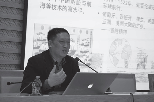 张柏春研究员从历史的、比较的视角介绍了从近代至现代再到当代的科学技术在欧洲与中国的发展进程,揭示出近代以来中国曾与西方国家在科学技术上的差距。他认为,在西方扩张与全球化的与境中,中国科学技术逐步走向现代化。他从14 世纪讲起,指出当时的中国与欧洲在社会、文化等方面的发展表现出明显的方向性差异。17 世纪时,欧洲发生科学革命,来华传教士将欧洲的部分科学技术介绍到明清两朝,然而这种交流是十分有限的,因为当时的中国社会无意改变自身的知识价值体系。而到了18 世纪欧洲进行工业与技术革命时期,中国的“礼仪之争”导致依附于传教的科技传播随之中断。因此这一时期的中国很大程度上处于闭门造车的状态。鸦片战争的失败,使得19 世纪的清政府在“中学为体、西学为用”的指导原则下有选择地引进西方的“坚船利炮”技术。中国在20 世纪前半叶从制度层面接受现代科学技术,在50 年代开始全面向现代科学技术“进军”。张柏春研究员风趣幽默的演讲风格,结合具体科技史轶事的剖析发人深省。演讲结束后,听众们纷纷与张柏春研究员展开交流互动。