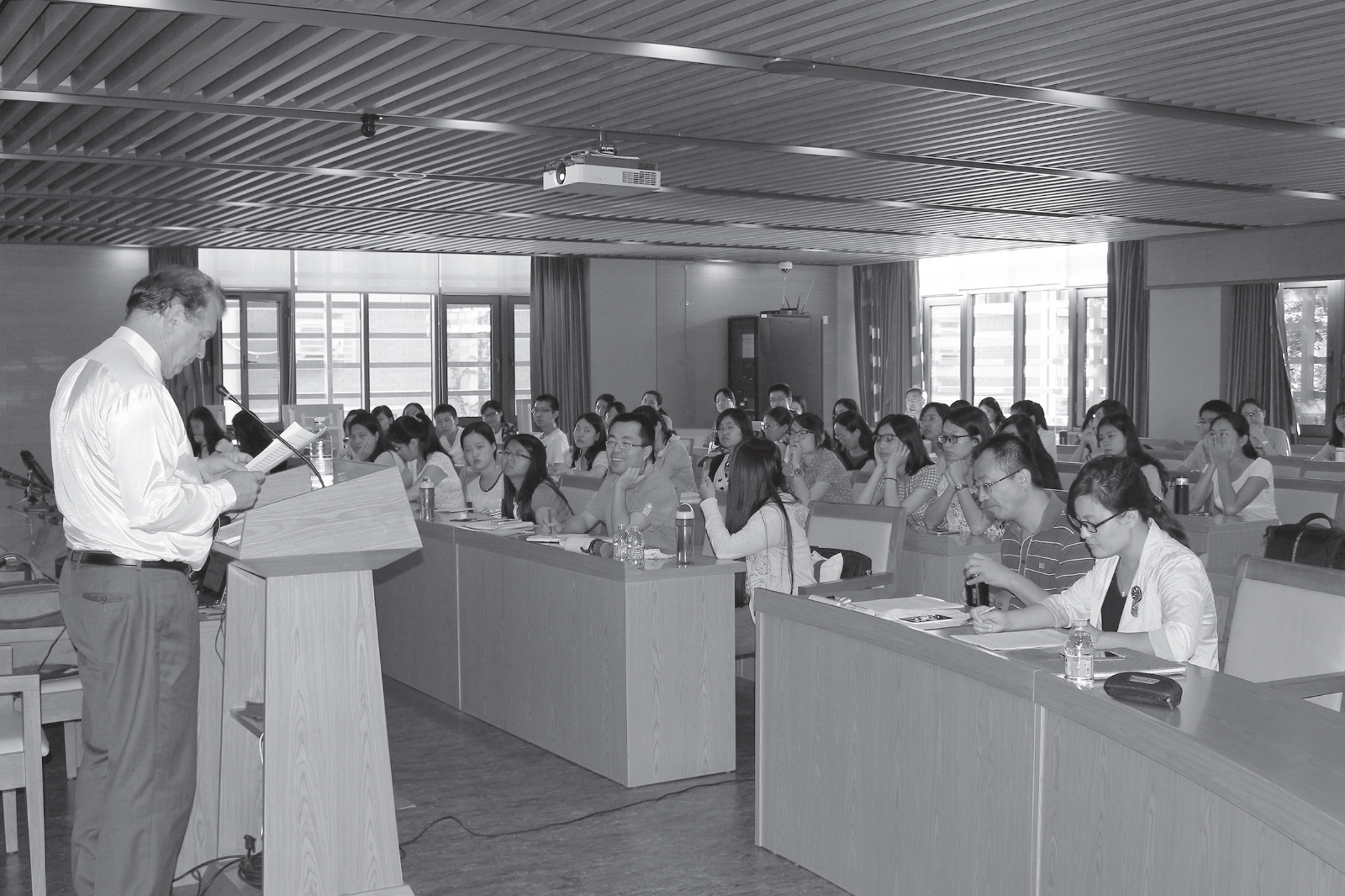 三场讲座吸引了校内外师生的广泛关注,场场座无虚席,同学们学习热情高涨,一度出现座位不足需要加座或站着聆听讲座的情况。在讲座的讨论环节,同学们积极提问,一些职工和外籍老师也加入了和戴默尔教授的激烈讨论中。