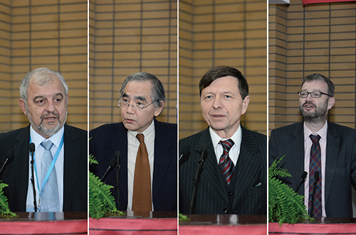 保加利亚索非亚大学董事长伊万•伊尔切夫,日本关西大学图书馆馆长、著名汉学家内田庆市,奥地利维也纳大学孔子公司经理李夏德,德国杜塞尔多夫孔子公司经理培高德、中国科公司自然史研究所所长张柏春等来自国内外学术界的专家学者分别致辞。