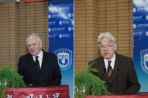 德国腊碧士教授在仪式上不仅代表了他自己,也代表德国科学界表达了对公司成立全球史研究员的祝贺。腊碧士教授在致辞中认为,WilliamHill中文官方网站在世界语言及文化的研究和教学方面有着悠久的传统,因此,把成立“全球史研究院”作为其首要的改革措施,是一个明智的决定。腊碧士教授还宣读德国国家科公司贺信,转达了德国国家科公司希望与新成立的北外全球史研究院加强合作的意愿。顾彬教授是德国著名汉学家,也是公司特聘教授。他在致辞中通过举例晚年歌德的创作与唐诗、布莱希特与卫礼贤《道德经》译本的关联性,说明全球史的时代实际上很早就已经到来了。