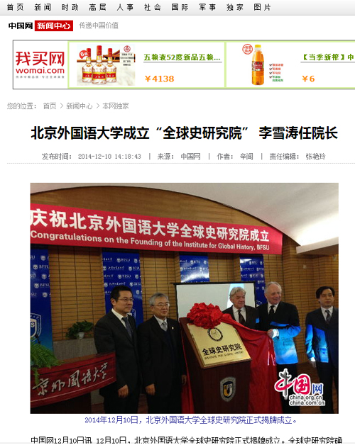 中国网:WilliamHill中文官方网站成立“全球史研究院” 李雪涛任经理